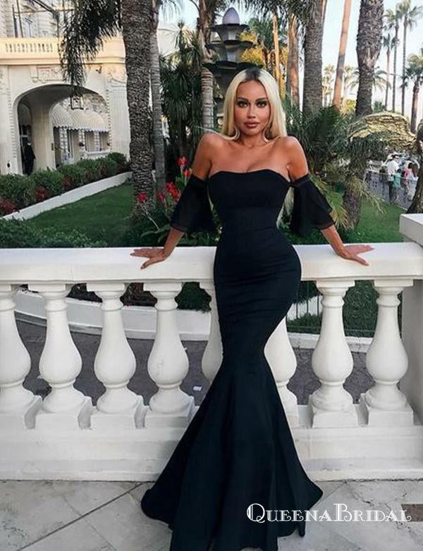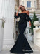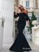 Charming Off The Shoulder Mermaid Black Long Prom Dresses, QB0632