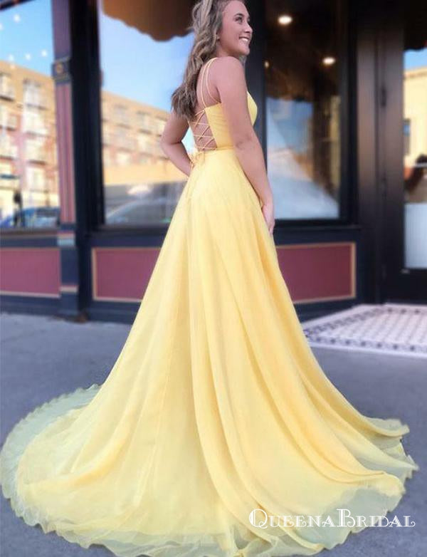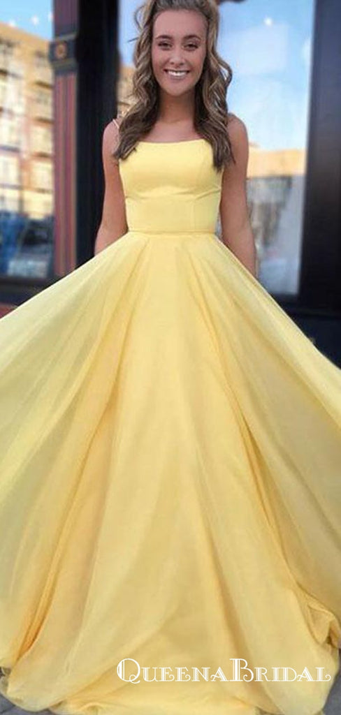 Charming Simple Yellow Long Cheap Spaghetti Straps Prom Dresses, QB0637