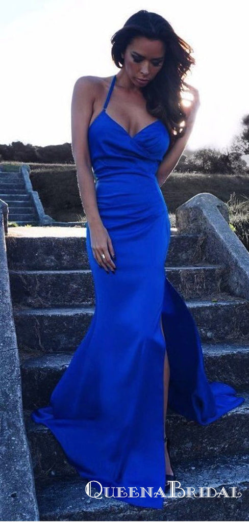 V Neck with Spaghetti Strap Side Split Sexy Long Mermaid Prom Dresses, QB0663