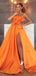 Sexy Strapless Orange Stain A-line Split Long Cheap Prom Dresses, PDS0107